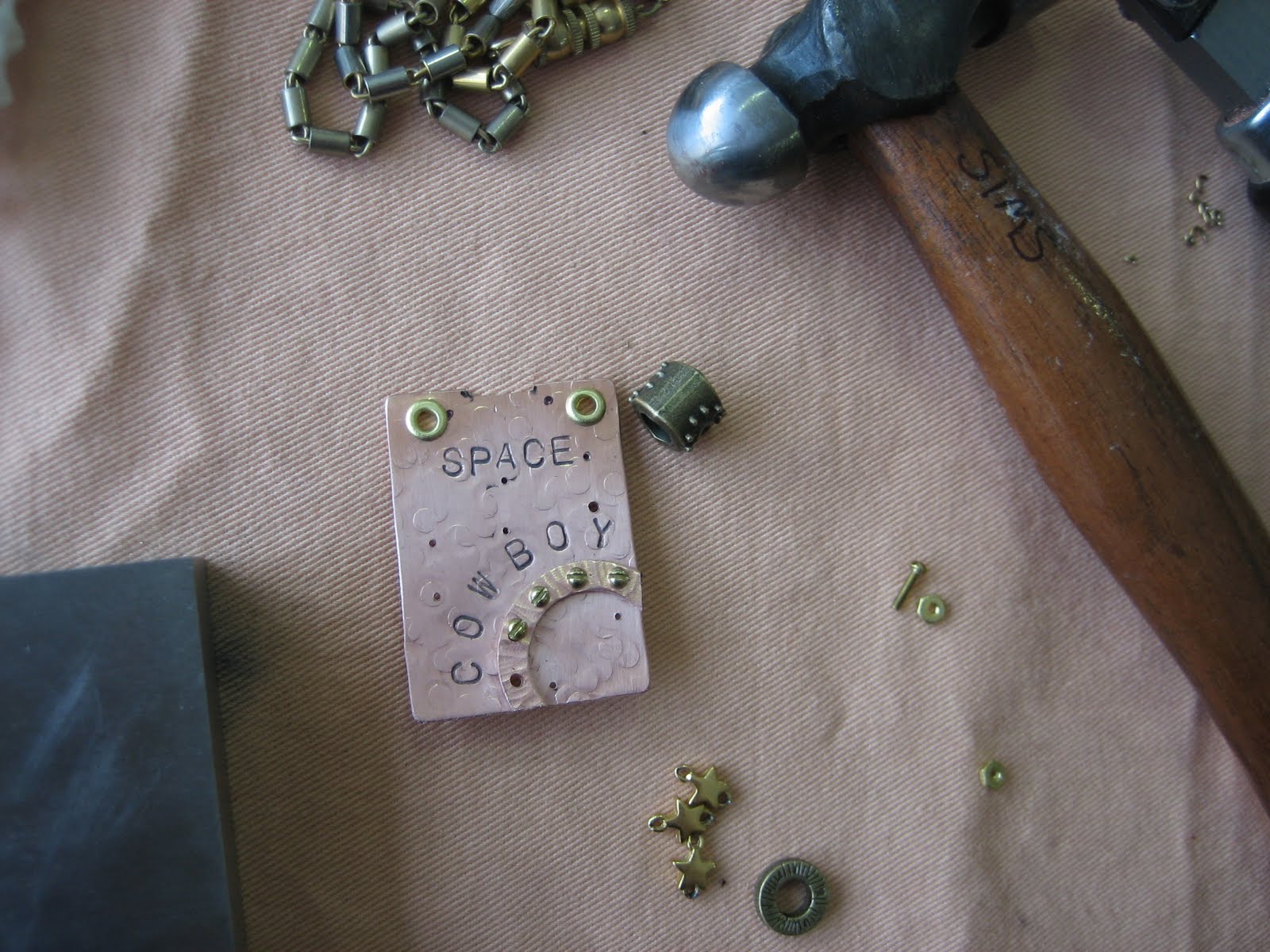 in Kansas City. The bead show was fairly impressive for a small show and quite crowded but the main draw for me was the steampunk pendant workshop. It seemed like a fun opportunity to do some cold connections in a style I don't normally use. Here's the piece in progress...